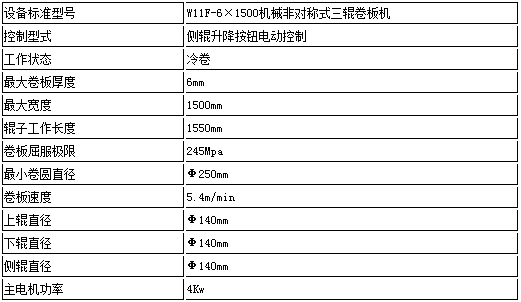 W11F三辊非对称卷板机系列:性能与特点:该机结构型式为三辊非对称式,下辊为主传动,并做垂直升降运动,以便夹紧板材,并通过下辊齿轮与上辊齿轮啮合,同时作为主传动;侧辊作倾升降运动,具有预弯、卷圆和校园多重功能。结构紧凑操作维修方便。技术参数